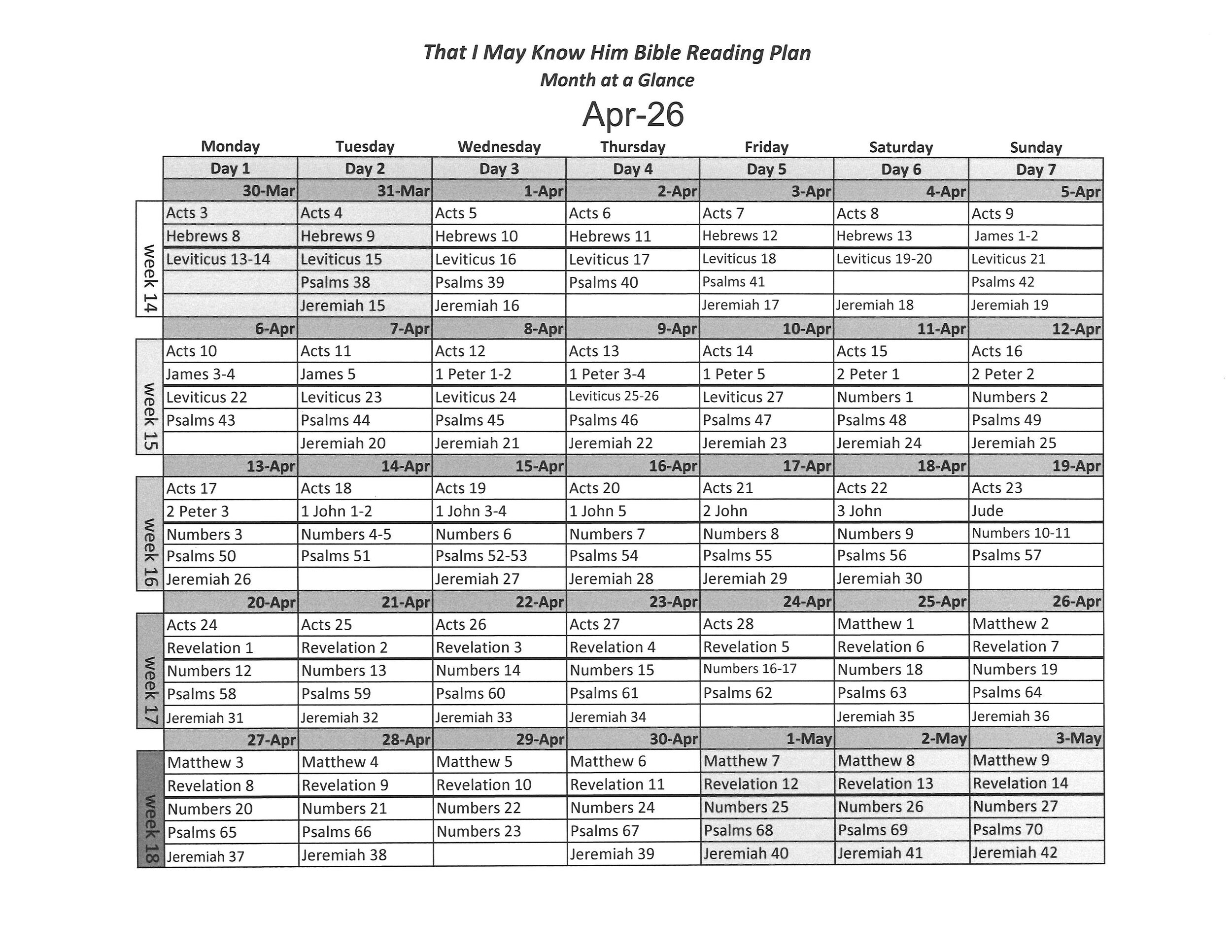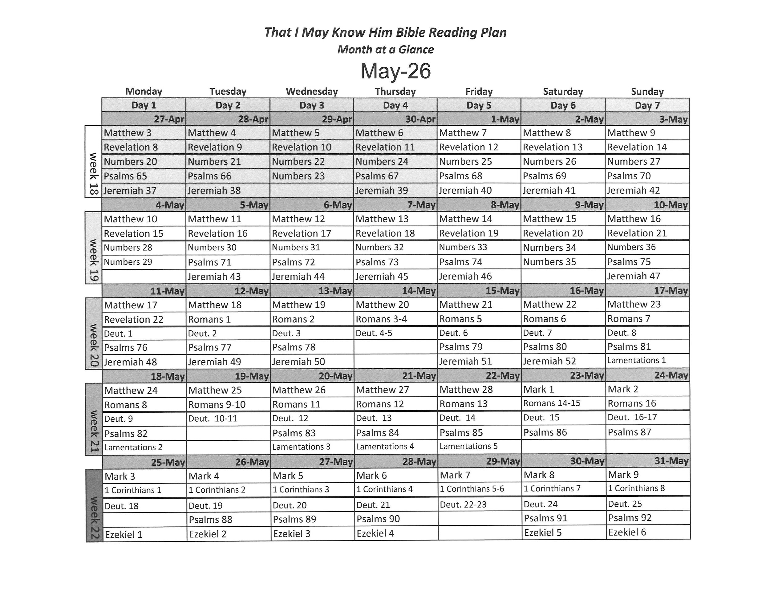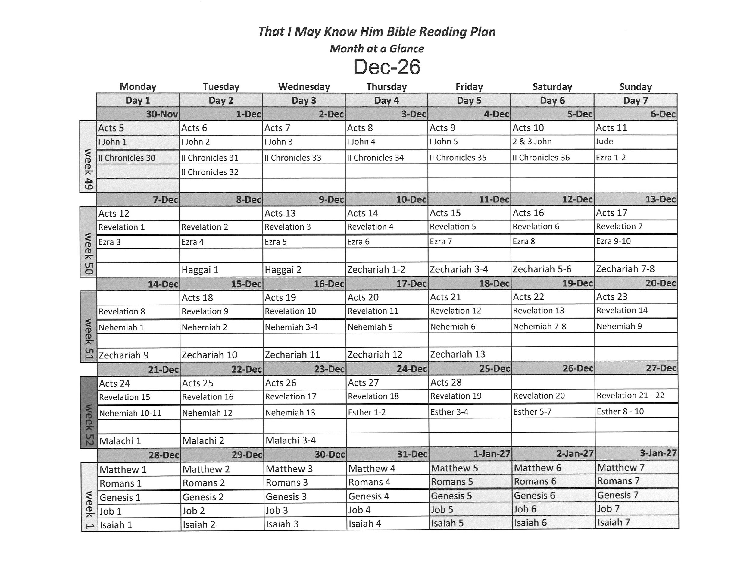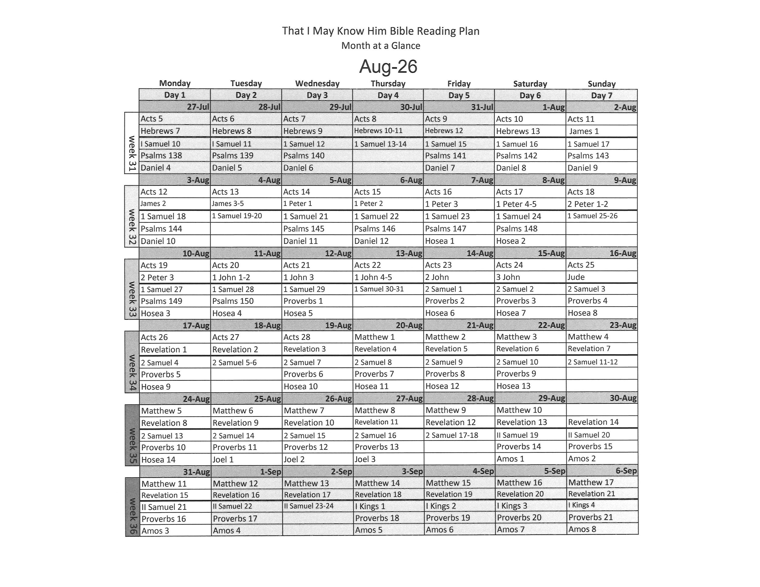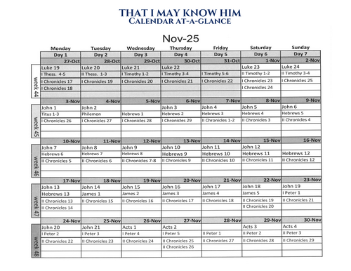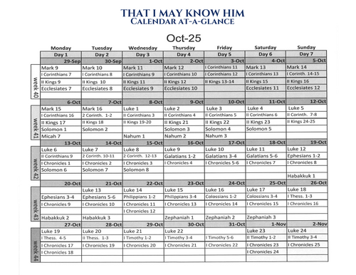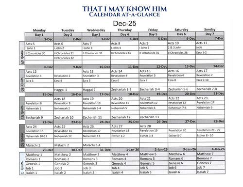 Know Him Calendar at a Glance