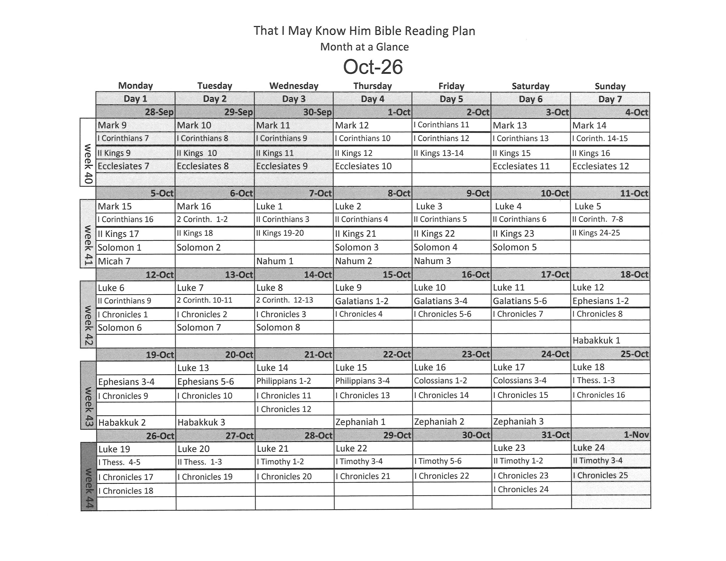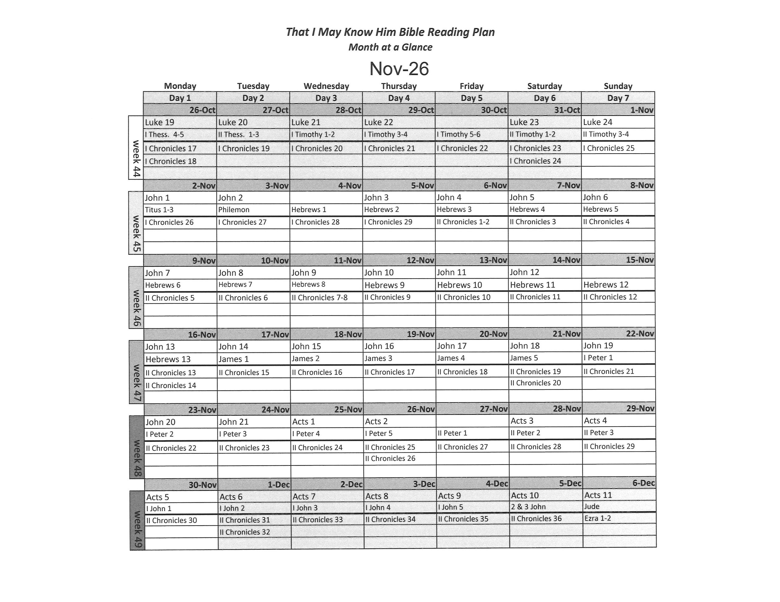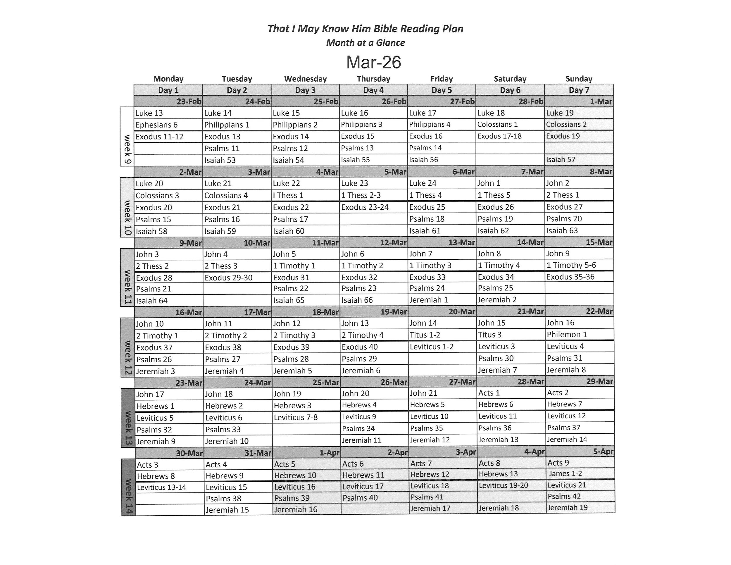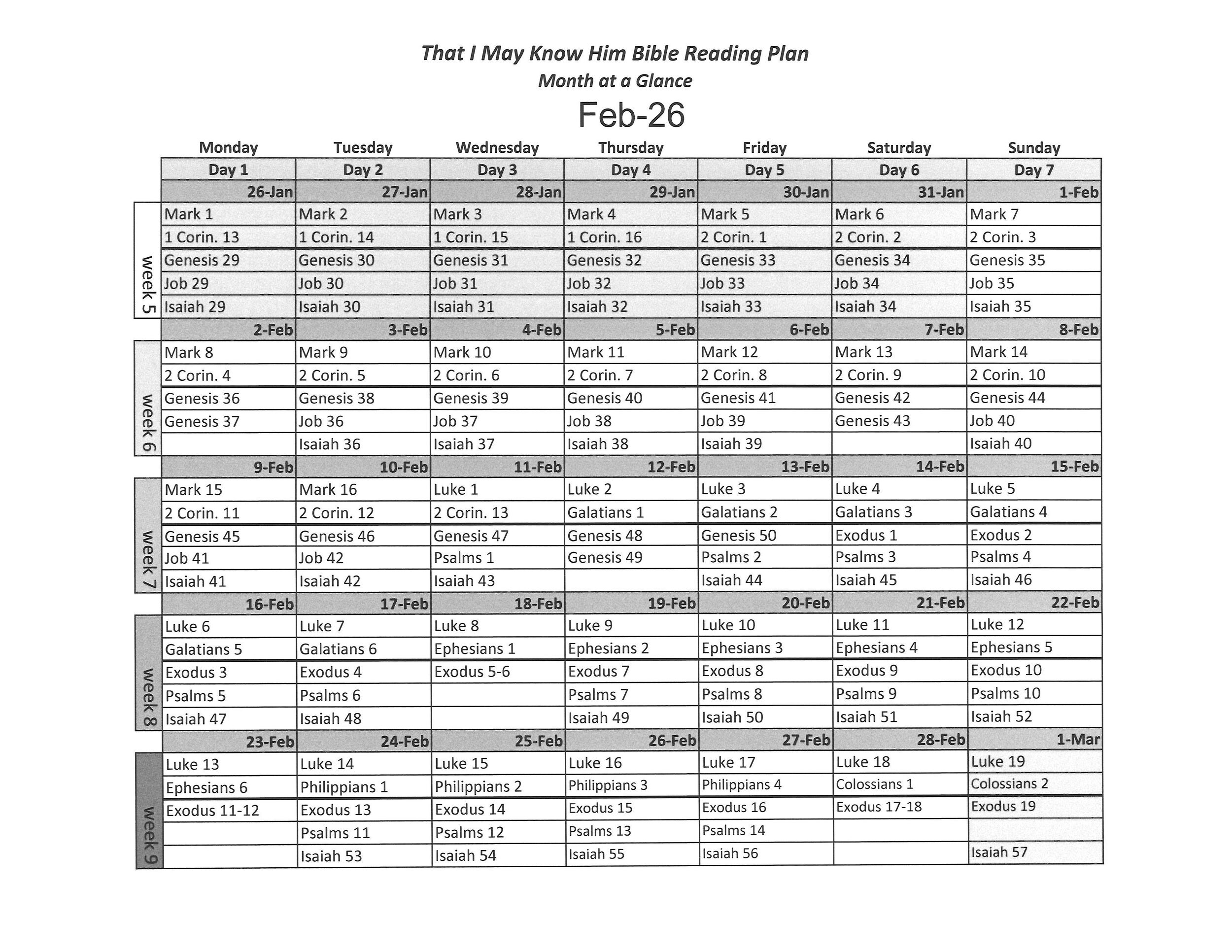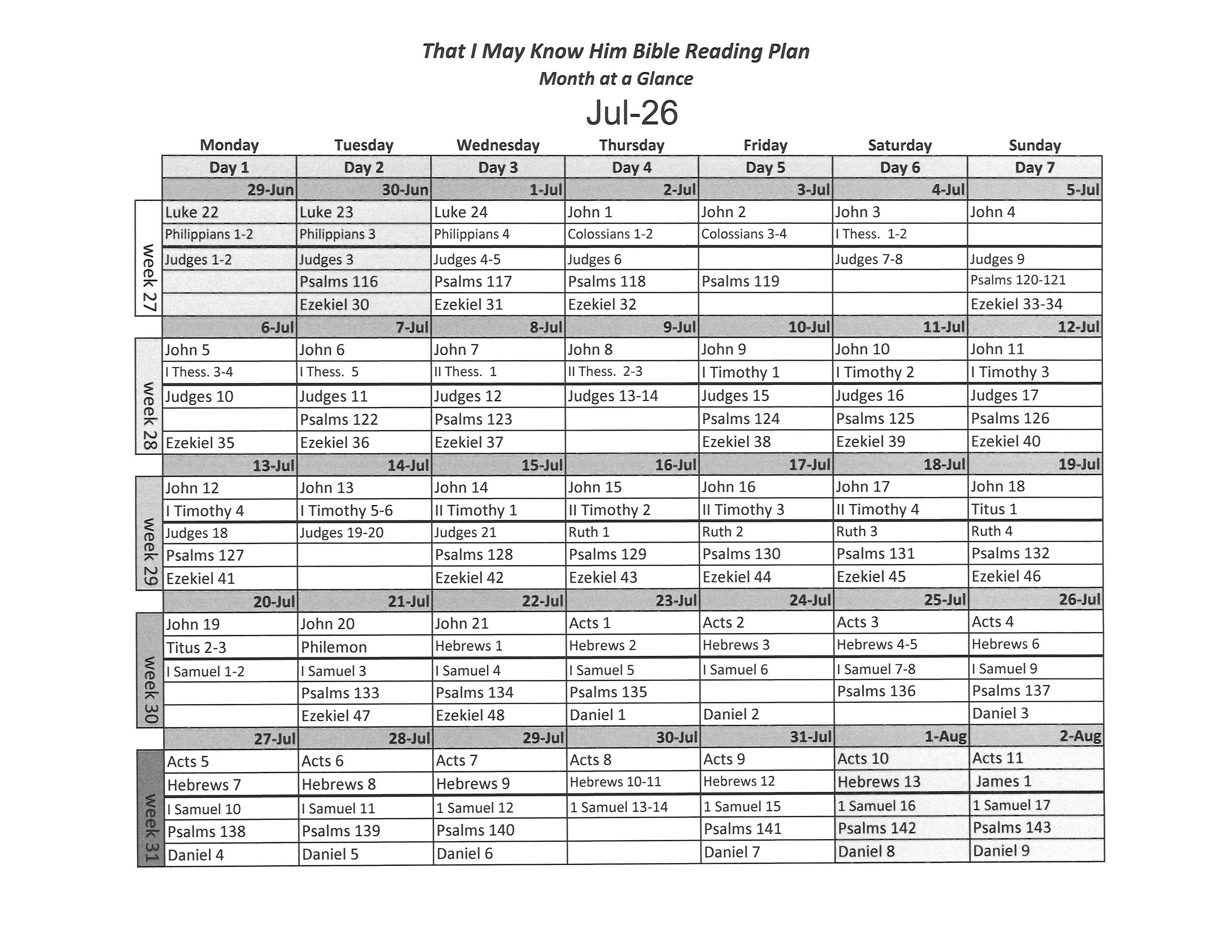 Know Him Calendar at a Glance